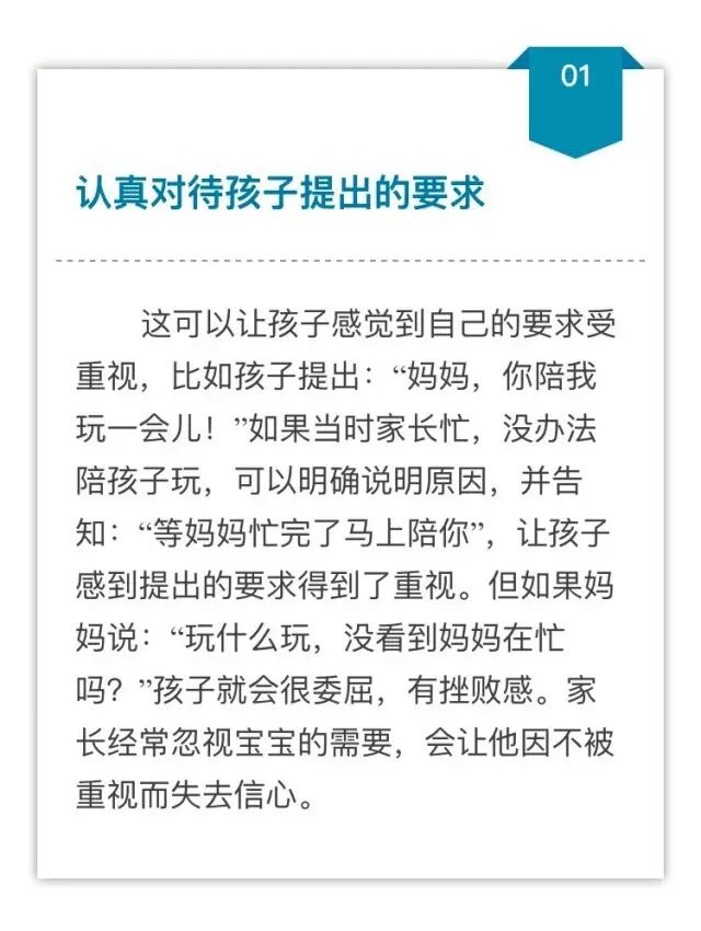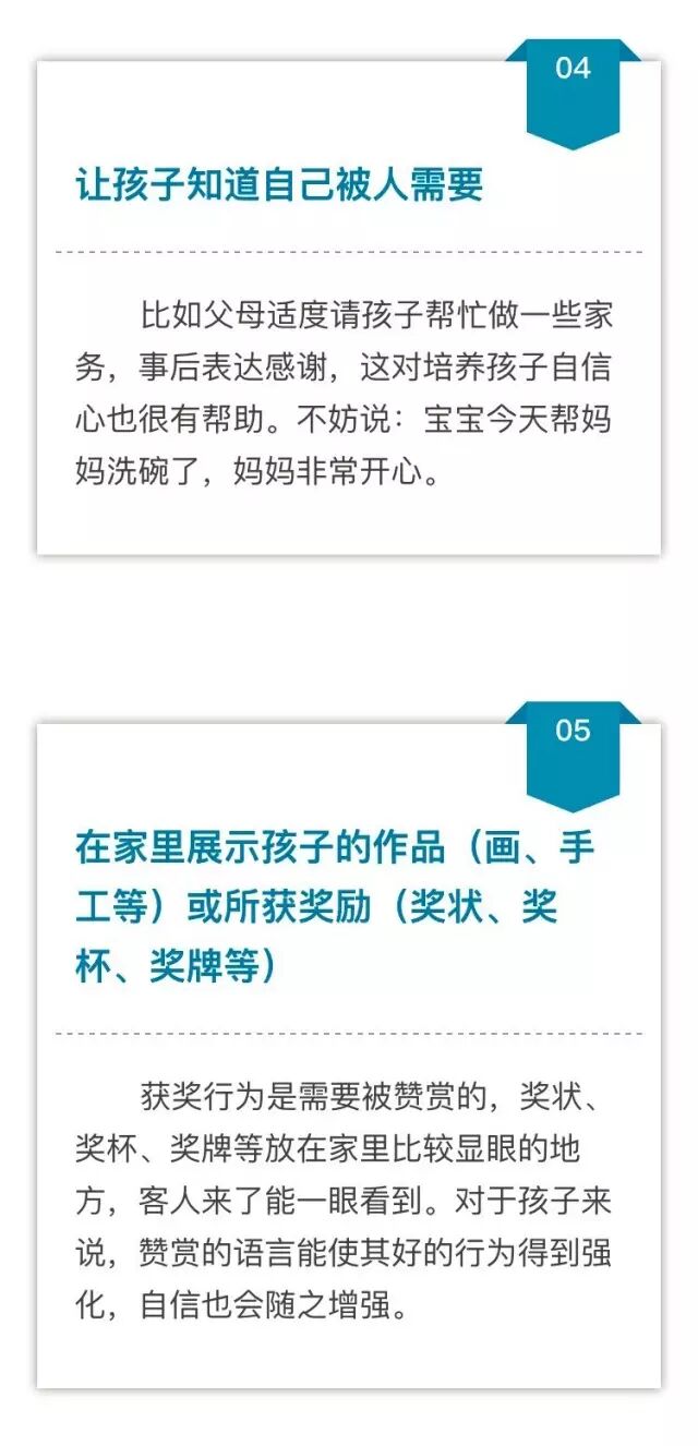 孩子的自信心在其刚出生时就开始萌芽了。当他咿咿呀呀跟你说话、伸出双手求拥抱、弄出各种动静求关注时,他的自信心就在发展了。父母一些不经意的行为很可能会误伤这颗嫩芽,下面这些做法则能很好地呵护其茁壮成长。